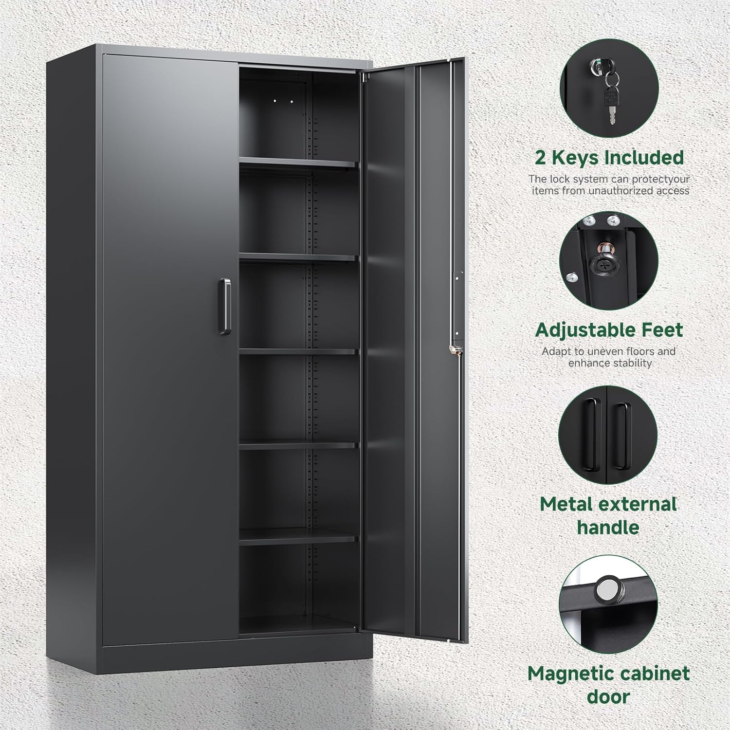 Letaya Metal Garage Storage Cabinets with Lock-72 Tall Tool Organizer Steel Lockers, 5 Adjustable Layers Shelves, 18″D x 36″W x 72″H